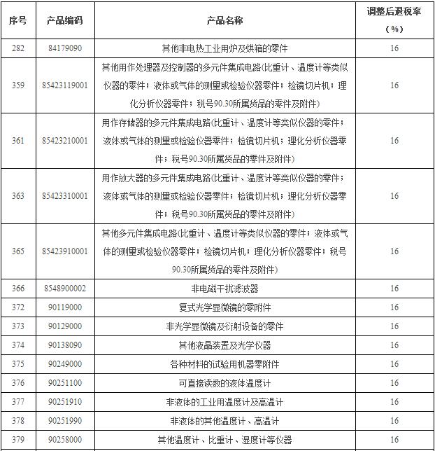 值此中美貿易戰如火如荼進行的背景之下,財政部于2018年9月5日,公布了《關于提高機電 文化等產品出口退稅率的通知》。通知公示了提高出口退稅率的產品清單,397項機電、文化類產品退稅率得到提升,最高可達16%。其中24項產品與儀器儀表相關,5項屬于理化分析儀器零件。