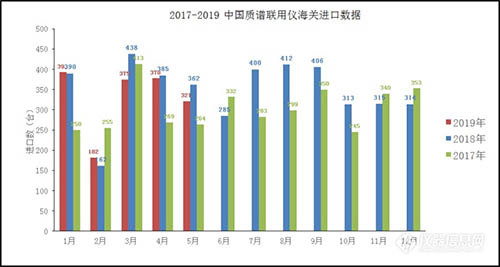 2017-2019(1-5月)質譜聯(lián)用儀海關逐月進口數(shù)據(jù)