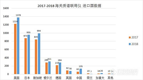 其中,從美國、日本、新加坡進口的質譜聯(lián)用儀占總數(shù)的80%以上。美國作為眾多質譜儀器廠商的大本營,2017-2018年從美國進口的質譜儀器數(shù)目居第一位,分別為1224、1378臺,金額分別為10.22億、12.04億元;日本也是質譜聯(lián)用儀的主要進口國,分別為873、955臺,金額分別為5.94億、5.99億元;新加坡坐落多家質譜廠商的生產(chǎn)基地,也為數(shù)目眾多的質譜聯(lián)用儀從新加坡進口至中國,2017、2018年分別進845、994臺,金額分別為9.87億、11.97億元。