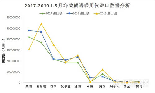 當前,中國市場上的商品化的質譜聯(lián)用儀還是以進口為主,質譜聯(lián)用儀的進口情況在一定程度上,也反映了我國目前質譜聯(lián)用儀整體市場的一些情況。從2018年3月,中美貿(mào)易戰(zhàn)打響,對整個科學儀器市場產(chǎn)生重大影響。質譜聯(lián)用儀作為一類重要的科學儀器,在貿(mào)易戰(zhàn)中到底受到了怎樣的影響也備受關注。為此,儀器信息網(wǎng)特別對2017、2018年及2019年1-5月,海關質譜聯(lián)用儀進口數(shù)據(jù)進行了匯總分析,為大家了解中國目前質譜聯(lián)用儀市場做一個參考。