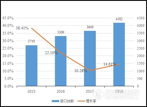 2015-2018年 質譜聯(lián)用儀進口量及增長趨勢