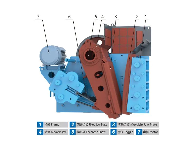 動(dòng)顎上方安裝了重型護(hù)板,可避免物料沖擊, 有效保護(hù)動(dòng)顎體及其內(nèi)部軸承不受損壞。