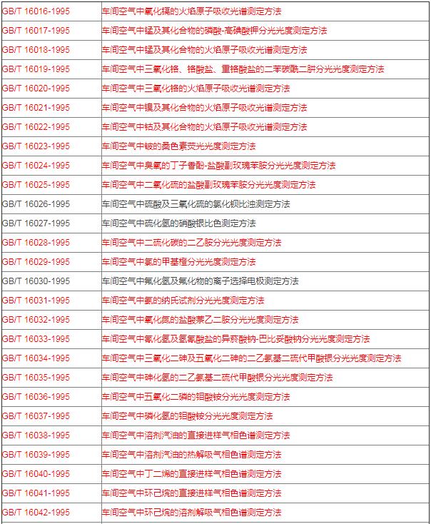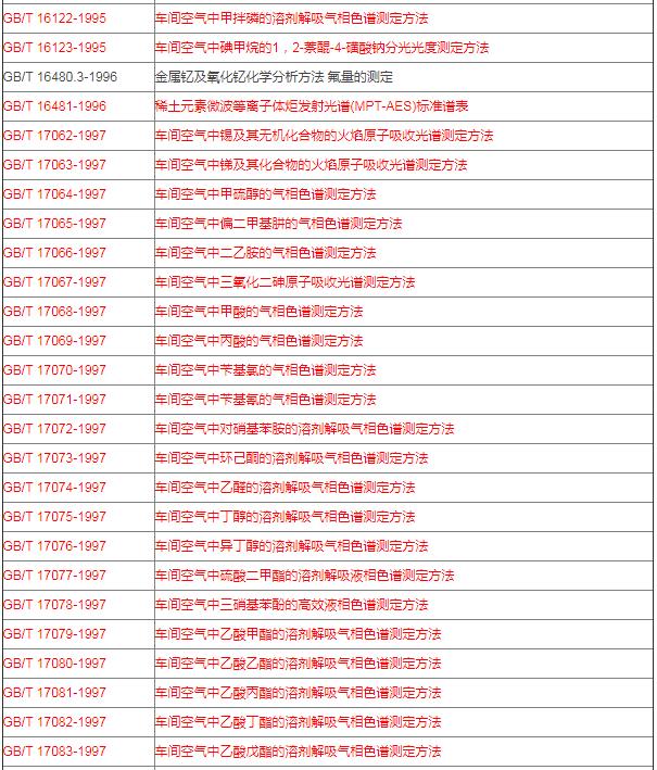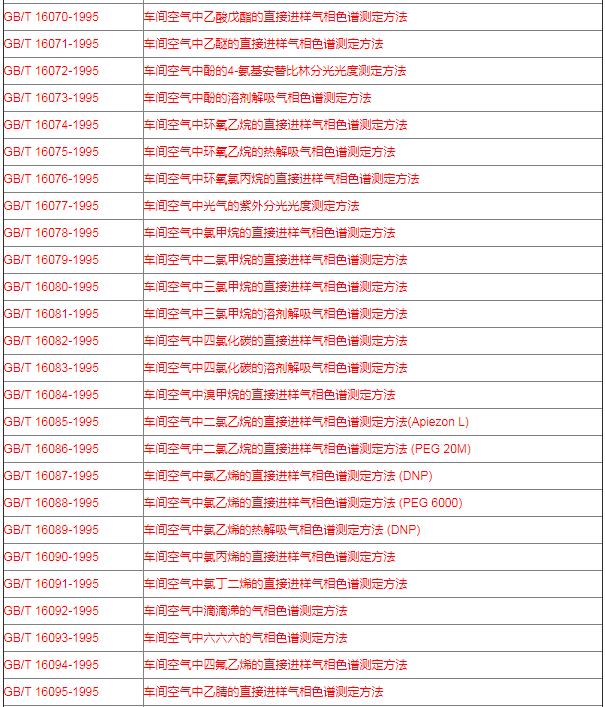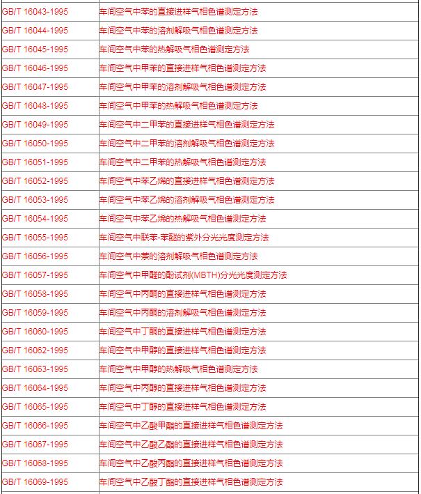 統計發現,本批廢止的標準中約有200項儀器方法,主要為色譜、光譜、氣質聯用分析方法,且以汽車行業車間空氣檢測為主。匯總如下: