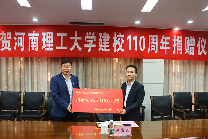 10月18日下午,鴻華科技賀河南理工大學建校110周年捐獻儀式在河南理工大學行政樓一樓會議室舉行。校長楊小林,鴻華科技有限公司總經理許高云先生出席,河南理工大學研究生院、材料學院、電氣學院、化工學院、能源學院、安全學院、機械學院等相關單位負責人參加了此次捐贈儀式,校長楊小林代表學校接受了捐贈,并向許高云先生感恩母校的情懷表達了衷心的感謝。