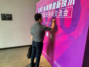 上午9時許,會場已準備就緒,各家經銷商代表陸續到場簽到,并在會議簽名墻上簽名留念。