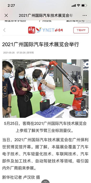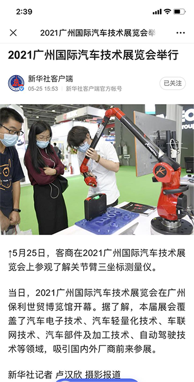 鴻華科技有限公司展位及展機-法國科瑞朗Kreon關節(jié)臂三坐標測量儀備受青睞,吸引不少客商駐足垂詢,并得到新華網(wǎng)、中華人民共和國中央人民政府網(wǎng)、搜狐網(wǎng)、北青網(wǎng)等知名媒體關注及入鏡報道。
